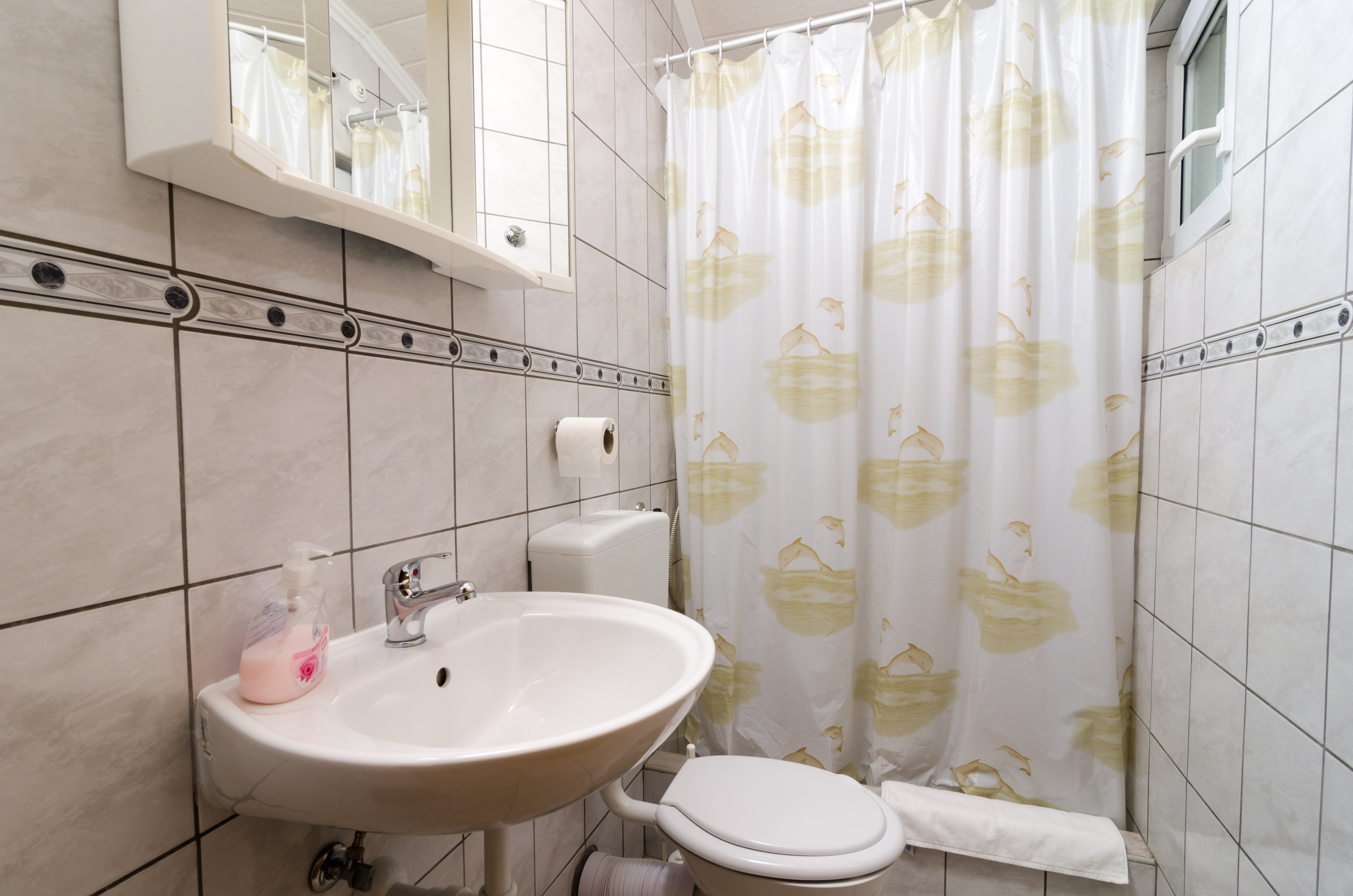 50 m2 (3+2 ležaja), sastoji se od jedne trokrevetne sobe i jedne dvokrevetne sobe,kuhinja, kupatilo, balkon, klimatizacija,pogled na more, parking, tv-sat.