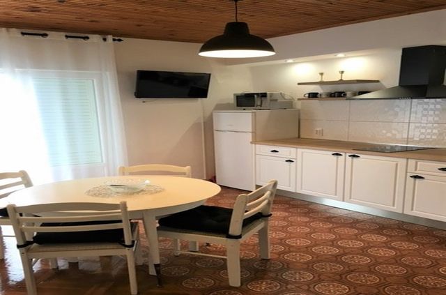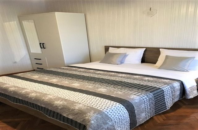 50 m2 (3+2 ležaja), sastoji se od jedne trokrevetne sobe i jedne dvokrevetne sobe,kuhinja, kupatilo, balkon, klimatizacija,pogled na more, parking, tv-sat.